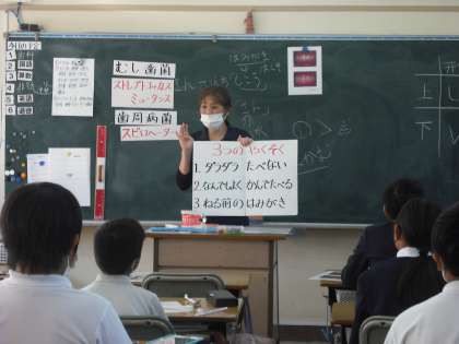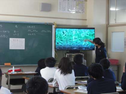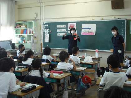 10月20日 2年生・5年生 歯磨き指導 公開日 2022/10/20 更新日 2022/10/20 お知らせ 2年生と5年生は、歯科衛生士さんと校医さんに来てもらって、歯磨き指導を行いました。どちらの学年も真剣に話を聞いていて、自分の口の中に興味がわいたようです。 スポーツドリンクの中の砂糖の量の多さに驚いたり、だえきで虫歯を防げることを聞いて驚いたりと反応がいい子どもたち。自分の口の中を鏡でのぞきながら楽しそうに活動していました。 さあ、今日から歯磨きの仕方が変わる・・・かな?