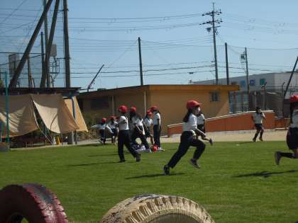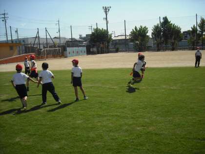 2年生は体育の時間、ズボンにしっぽをつけて取り合うしっぽとりをしました。1回戦あたり2分ぐらいでやったのですが、多い子は4本も友だちのしっぽをとっていました!