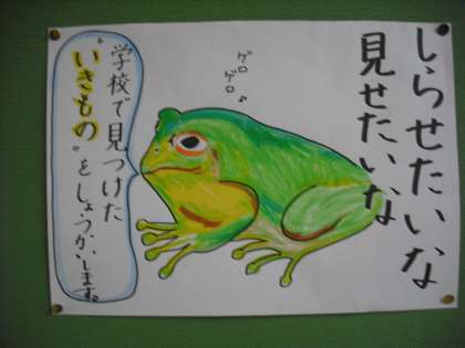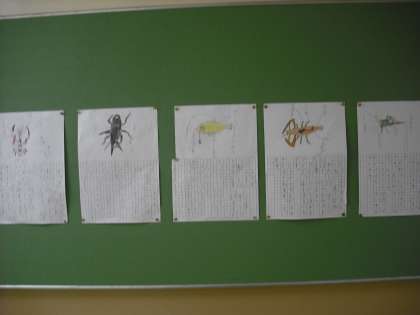1週間前に動物博士に来てもらった1年生。南館2階の廊下には、数々の作品がすでにできあがっていました!特徴をしっかり絵でかけていて、文もおうちの人に伝わるように工夫されていました! 参観をお楽しみに!