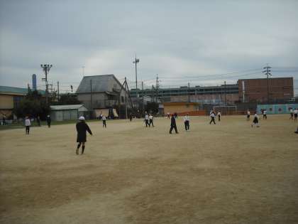 「逃走中」が大流行!今日は4年生が、サッカーゴールを牢屋に見立てて、復活カードを探して、牢屋に持ってきたら復活できるなどの工夫をしながら「逃走中」をしていました。