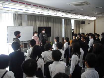校長室にゲストの方を迎えに来た3年生の子どもたちは、「段差があります。気を付けてください。」「下り坂になります。」「右に曲がったらランチルームです。」とランチルームまで見事にゲストの方をエスコートできていました!!