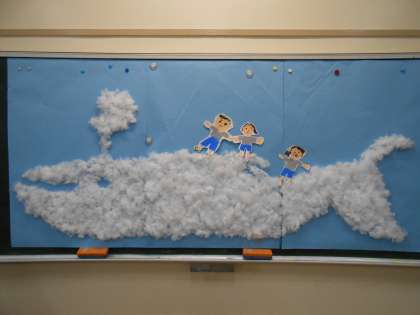 こんな感じで仕上がりました!!1年生の後ろの掲示板に、1年生のみんなをのせて浮かびます!!