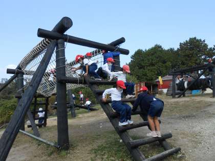 お弁当の後は、おやつをゆっくり食べたり、アスレチックで遊んだり、思い思いの時間を過ごしました。