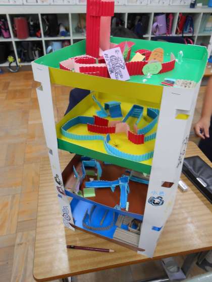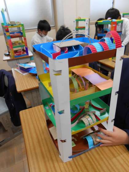 4年生 図工の作品会 公開日 2022/11/07 更新日 2022/11/07 4年 4年生は図工で、ビー玉が転がるしくみを作って組み立てたものを見合って遊んでいました。全員オリジナリティーあふれるおもしろい作品になっていました! このあと、これを使って他学年との交流も考えています!