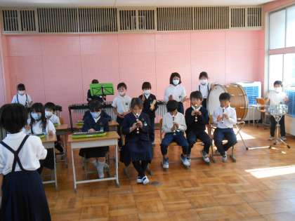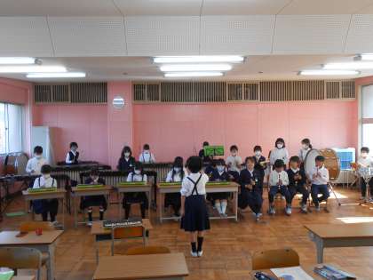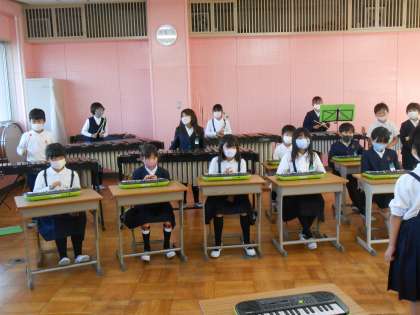 3年生 音楽「合奏」 公開日 2022/11/10 更新日 2022/11/10 3年 3年生は音楽の時間に、1ヶ月ほど練習をしてきた「ミッキーマウスマーチ」の合奏の発表をしてくれました。今回は校長先生、教頭先生、担任の先生だけがお客さんでしたが、大ホールで披露してほしいくらいしっかりそろっていてかっこよかったです!