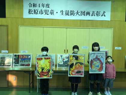 松原市防火図画表彰式 公開日 2022/11/10 更新日 2022/11/10 お知らせ 今年度の防火図画作品展には、 317点の応募があり、天美北小学校の5年生からなんと!3人も入賞者が‼︎ おめでとうございます。 この後、大阪府での選考になるそうです。 これを機会に、みなさん防火意識を高めましょう!