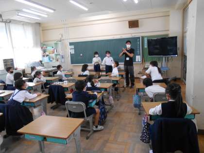 2年生と4年生 遊びの交流に向けて 公開日 2022/11/11 更新日 2022/11/11 2年 4年生が2年生の教室を訪れて、来週行われる遊び交流の内容やルールを伝えに来てくれました。「けいどろ」をするそうです。今から楽しみな様子の2年生でした!