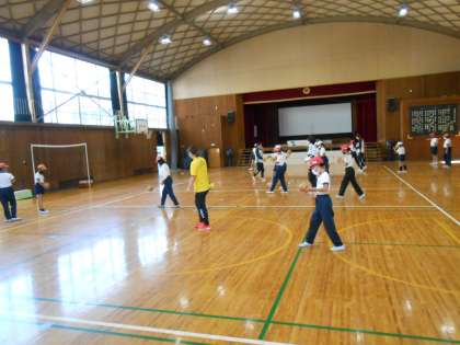 大阪ラヴィッツというハンドボールチームの方々に来ていただき、5年生はハンドボール体験をしました。「考えてチャレンジすること」「思いきり楽しむこと」という2つの目標をもって、ジャンプシュートの練習を1時間行いました。