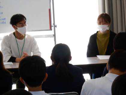 部活を通して仲間といっしょにつらいことをのりこえてきたお話をしてくれました。いっぱい遊んでこのメンバーでなかよくなってほしいこと、何でもわかってもらえる仲間をつくってほしいことを語ってくれました。