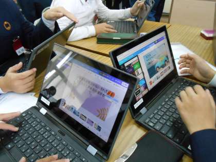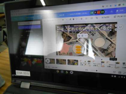 5年生 総合の時間「CM作成に向けて」 公開日 2022/11/24 更新日 2022/11/24 5年 5年生は、工場見学のまとめとしての「CM作成」を進めています。「CANVA」というソフトを使って、プレゼンテーションを工場ごとに作成しています。CM監督(担任)のチェックもしっかり受けて、より相手に伝わりやすいCM作りに奮闘中です! 音楽を入れたり、写真を入れたり、スキルがどんどん高まっていく5年生です!