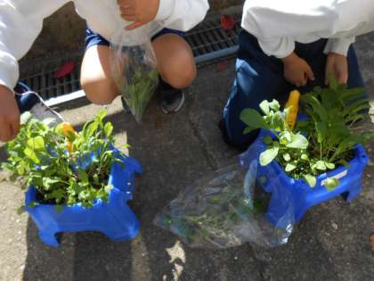 2年生 生活の時間に 公開日 2022/11/25 更新日 2022/11/25 2年 2年生は、生活の時間に育てていたラディッシュの間引きをしました。間引きした葉っぱは、ふくろに入れて今日持ち帰っています。サラダにしてもいいですし、お味噌汁に入れてもいいと思います!