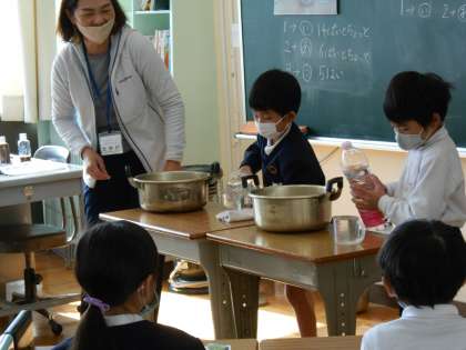 1年生 算数の学習 公開日 2022/12/01 更新日 2022/12/01 1年 「大きさが違う2つのペットボトルの中の水は、どっちが多い?」のなぞを解く時間でした。解決のために、同じ大きさのカップを使って、水の量を量っていきました。「2はい目」「3ばい目」といっしょに数えて、すっきり解決の1年生たちでした!