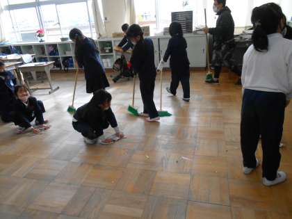 「12月はお客さんがたくさん来られる月です。みんなの学校をみんなできれいにしましょう。」という呼びかけに、いつもの掃除より気合いが入った掃除をどの学年もしてくれました!