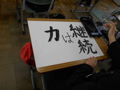 6年生は、「自分が大切にしたいこと」を筆を使って表しました。それぞれの個性があふれていました!