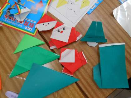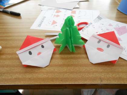 2年生 折り紙でクリスマス飾りづくり 公開日 2022/12/16 更新日 2022/12/16 2年 2年生は図工の時間に、折り紙でクリスマスの飾りを作りました。「かんたん、むずかしい、げきむず」の3つのレベルがあって、「げきむず、できた−!」と喜んでいる人がいたり、かんたんコースのものに、色をぬって楽しんでいる人がいたり、思い思いの過ごし方をしていました!