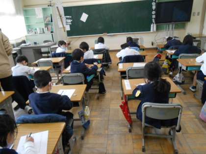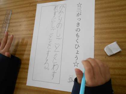 1年生は、一人ひとりが3学期の目標を考えていました。係のことや宿題のこと、友だち関係のことなどそれぞれががんばることをきれいな字で書いていました。