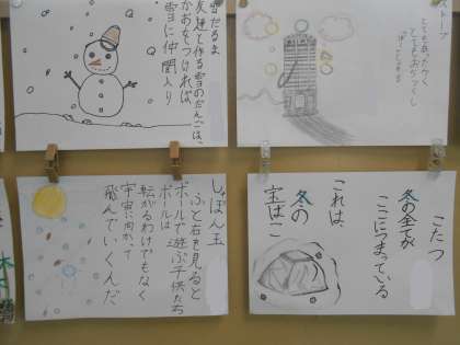 5年生 詩の作品集・・・ 公開日 2023/01/16 更新日 2023/01/16 5年 5年生の詩が掲示されていました。「比喩」を使って、自分の想像力をふくらませて作られていて、ユニークな作品が多かったです!