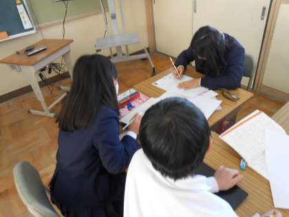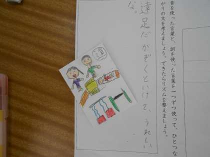 3年生 国語の学習 公開日 2023/01/17 更新日 2023/01/17 3年 3年生は、国語の学習で、習った漢字を使って、「かるたづくり」をしていました。みんなでつくったかるたで遊ぶことを想像して、楽しそうにつくっていました!