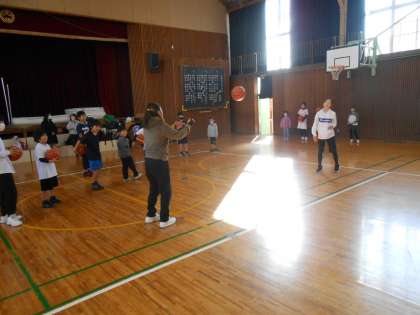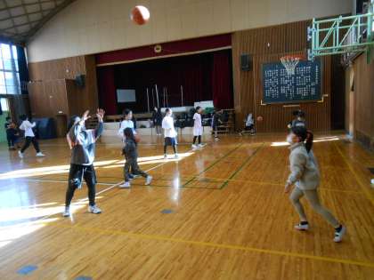 天北元気サタデー3「バスケットボール」 公開日 2023/01/21 更新日 2023/01/21 天美北小学校PTA 体育館では、半分のコートで、バスケットボールをしました。大きいボールの扱いが難しいけど、必死にボールを追いかけていました!