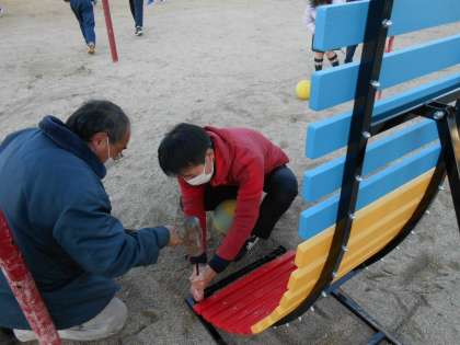 ベルマーク貯金で購入した逆上がり補助板を運動場に設置しました。さっそくやってみた人が、「初めて回れた!!」と、さっそくとってもいい笑顔に出会えました♪