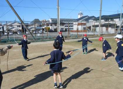 1年生は「なわとびどれだけとべるかな大会」をしていたり、5年生はひたすら先生を追いかけたりしていました。
