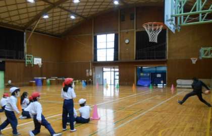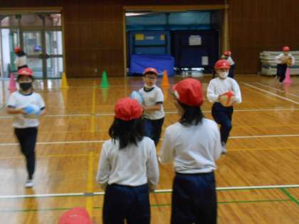 2年生に入ってくれている先生が、ラグビーを教えてくれました。ボールをもって走る姿がとてもかっこよかったです! 教頭先生は、20m先のボールに、ボールを当てるという技を見せてくれて、2年生の人たちはとても驚いていました!