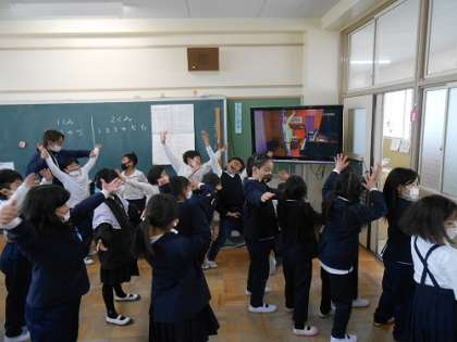 みんな大好き音楽の時間!「少年少女冒険隊」というみんなが大好きな曲で、みんなで歌って踊っていました!