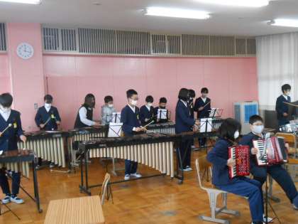 6年生は合奏の練習の続きをしていました。クラスが音楽を通して「一つ」になってきています!