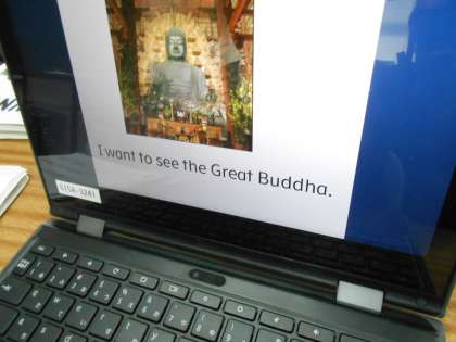 「修学旅行で行きたいところとその理由」を、英語でスピーチする練習をしていました。タブレットでプレゼンを作成してスピーチをします。北は北海道、南は沖縄まで行きたいところはさまざまでした!