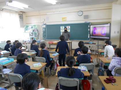 3年生 英語の時間 公開日 2023/02/15 更新日 2023/02/15 3年 「ホワッツ ディス?」先生が何のカードを持っているか当てるゲームです。 「イッツ ア ストロベリー」などと6つのフルーツから、これかな?と想像した物を英語で答えていました。