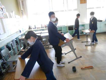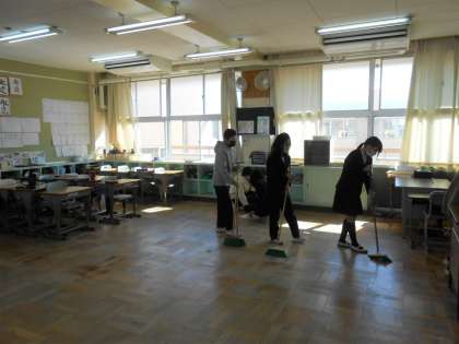 教室掃除をこつこつがんばる6年生です。かっこいいです♪