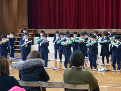 2月28日 1年生 学習発表会 公開日 2023/02/28 更新日 2023/02/28 1年 5年生の何人かに会場の設営を手伝ってもらい、1年生の学習発表会が始まりました。 できるようになったことを、自信をもって発表している姿に、一年間の成長を感じられた時間になったことと思います。ご参観、ありがとうございました!