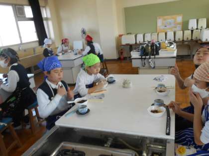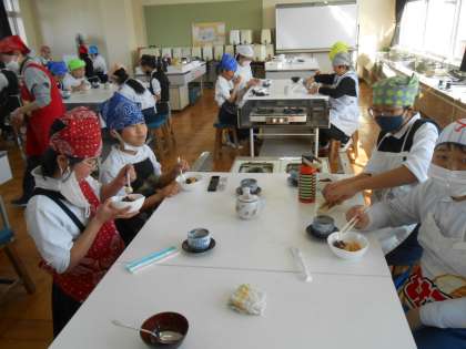 調理実習2クラス目。みんなで作った白玉団子とお茶の味に思わず笑みがこぼれている人がたくさんいました♪