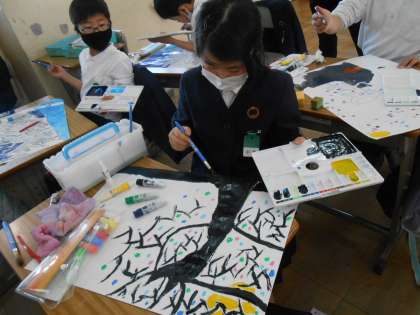 3年生 図工 モチモチの木 公開日 2023/03/06 更新日 2023/03/06 3年 それぞれの考える「モチモチの木」のできあがりが近いです♪豆太が見た不思議な光景をしっかり表現しようとしていました!