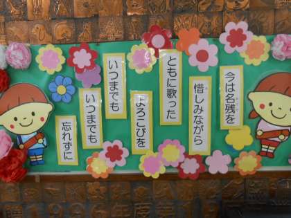 卒業式まで10日をきりました! 学校内の飾りを貼り替えて、卒業へのムードが高まっています!