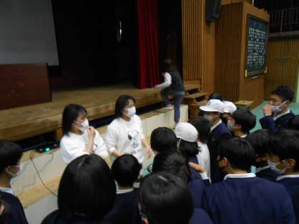 3月14日 卒業サプライズコンサート♪ 公開日 2023/03/14 更新日 2023/03/14 6年 6年生の卒業お祝いに、アーティスト姉妹が来てくれました!(天美北小学校の先生です♪) 子どもたちに人気の歌とダンス、そして、卒業式に子どもたちが歌う歌などを披露してくれました。 コンサート終了後は、まわりに人だかり!わいわいと楽しめていてみんなの笑顔あふれる時間になりました!