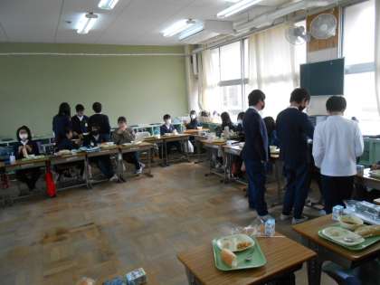 中:このメンバーで食べる最後の給食。円形にしてみんなで食べました♪