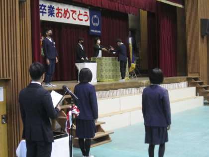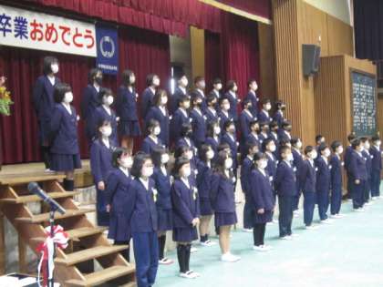 卒業式 2 公開日 2023/03/17 更新日 2023/03/17 6年 式中は、さすが本番に強い6年生らしさが見られました。6年生の先生いわく、「今日が一番答辞の声が出ていた」そうです。どの人も胸をはって退場をしている姿にも、教職員一同、成長を感じました。
