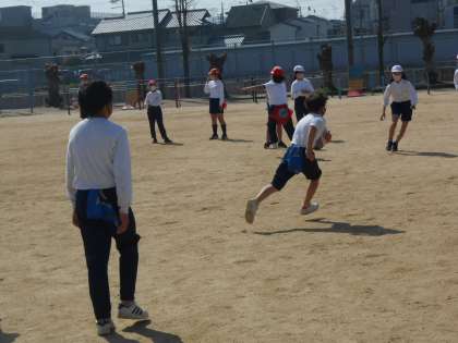5年生たちの今日のラグビー練習メニューは、3対3でした。しっかり作戦をたて、試合さながらの迫力をもってゴールラインを目指していました。この子たちの何人かは、何年後かのワールドカップに・・・出ていたらいいなあ♪