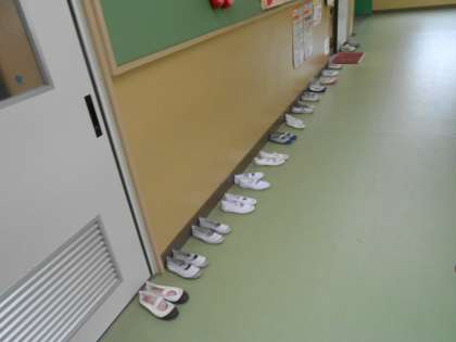 3年生の上ぐつ 公開日 2023/04/12 更新日 2023/04/12 3年 3年生が2測定を保健室でしていました。これは保健室前の廊下です。靴の乱れは心の乱れと言います。3年生たち、とてもがんばっていますね!