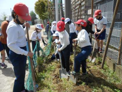 上:畑作りをしています。草抜きをして、耕して、何を植えて、何ができるのか楽しみです!