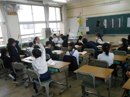 3年生の授業では、発表をした人が、次の人を当てるというやり方をしているときもあります。友だちに当ててほしい気持ちが強くていつもより挙手が増えているかも??