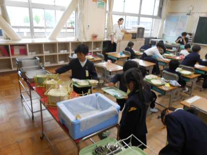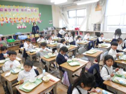 給食の片付け、一人でできます! 公開日 2023/04/19 更新日 2023/04/19 1年 1年生にとっては3回目の給食の日。今日も残さず食べられたかな? 食べ終わったら、自分でおぼんを片付けているのみこみの早い1年生たちでした!