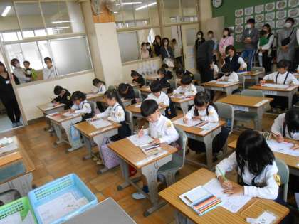 1年生 授業参観 公開日 2023/04/21 更新日 2023/04/21 1年 1年生は初めての授業参観です。緊張しながらも、いつものように手を挙げてがんばろうとする人がたくさんいました! 平仮名の「へ」の学習をしました。