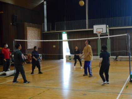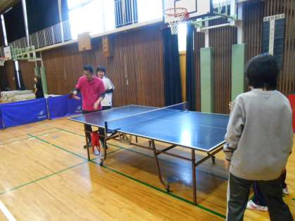 天美南小学校に二中校区の各団体さんがあつまり、スポーツ交流をしました。天美北小学校からも、よろしくお願いしますの思いをこめて、PTA役員さんや学校の先生も参加しました。競技は、ソフトバレーボールと卓球をしました。親睦・・・なのですが、みなさんアツくなって楽しんでいました♪