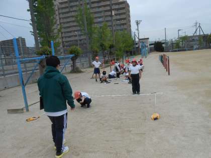 5年生は、今日はソフトボール投げと、立ち幅跳びを行いました。子どもたちが先生のサポートをたくさんしてくれていました!