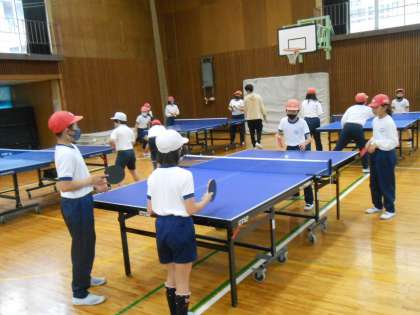 下:卓球クラブ:こちらも基本的な動きやルールを知ってから、試合をして楽しみました。