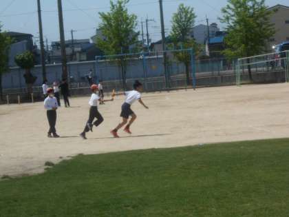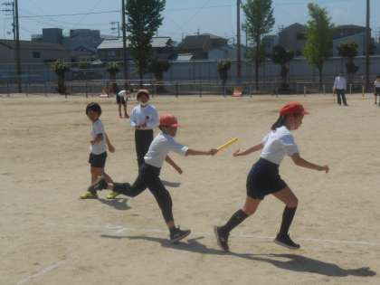 運動会で5年生も活躍できるように、今からバトンパスの練習を進めています。今日は、後ろを見ずにバトンパスができていました!リレーは、バトンパスでだいぶ順位が変わりますから練習あるのみです!