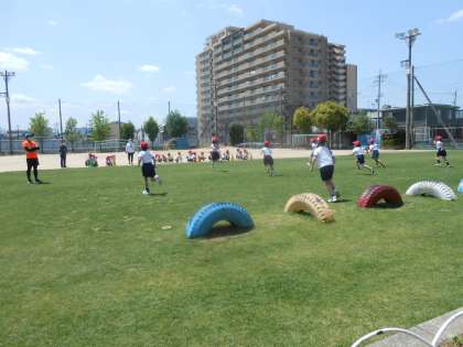 上:タイヤのところまで走り、Uターンして元の場所に走って戻っています。みんな一生懸命でした!