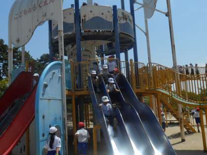 最後は遊具の広場で、いろいろなすべり台をして遊びました。疲れていても、遊具が見えた瞬間に、目が輝き出す人が多かったです♪